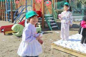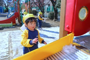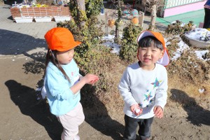 土曜日から降った雪が少し残っていたので、みんなで雪遊びを楽しみました!