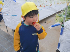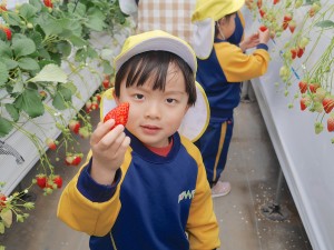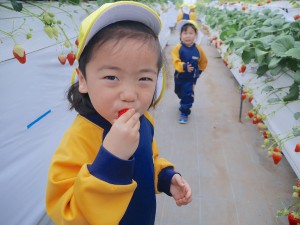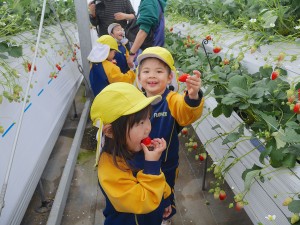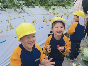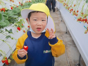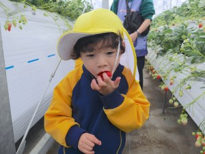今日は年少組のおともだちが、『越谷いちごタウン』さんへいちご狩りに出かけました。
