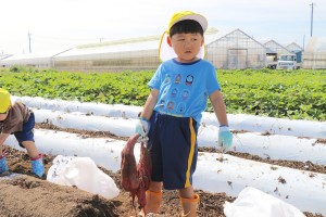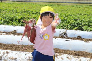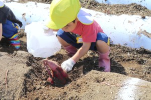 今日は年少組のおともだちが「さつまいも掘り」に出かけました。