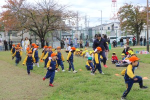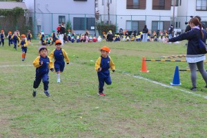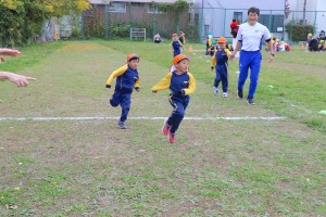 転んでしまうおともだちもいましたが、みんなゴールまで頑張って走っていました。