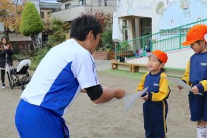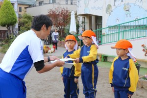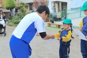 みんなが最後まで走ることが出来たので、全員に完走賞を渡しました。あきらめず頑張る姿はとてもかっこよかったです。