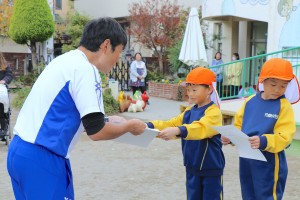 みんなで幼稚園に戻ってから表彰式を行いました。
