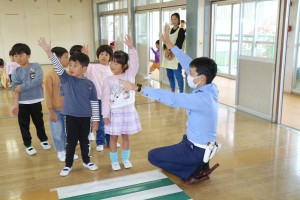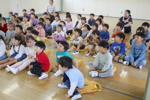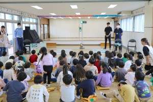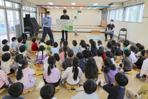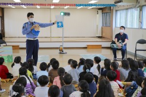 交通ルールや横断歩道の渡りかたなどのお話をしていただいたのですが、みんな真剣な表情で聞いていました。