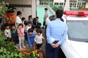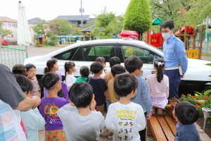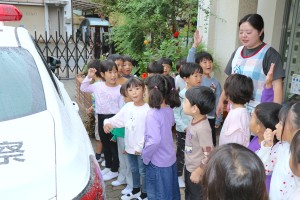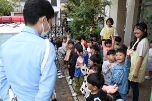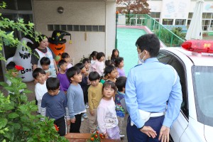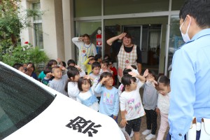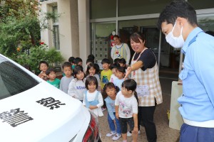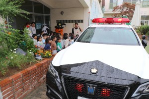 横断歩道の体験の後は、パトカーを近くで見せていただきました。