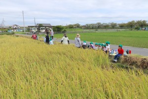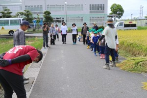 大切に育ててくれた萩野家の皆様に感謝しながら、稲刈りスタートです!
