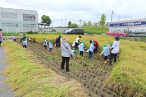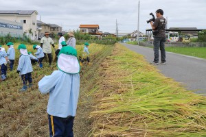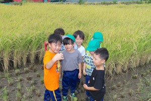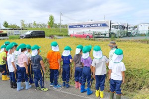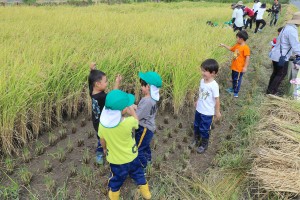 今日は年長組のおともだちが、稲刈りをしに出かけました。