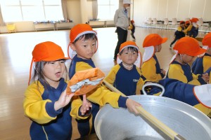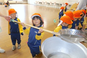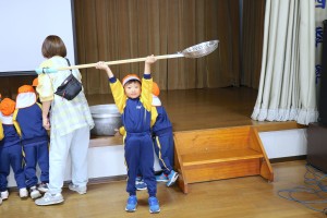 お弁当の後は実際に使っている、大きな調理器具の体験をさせていただきました。