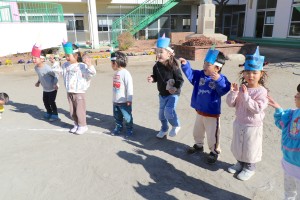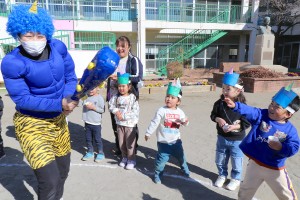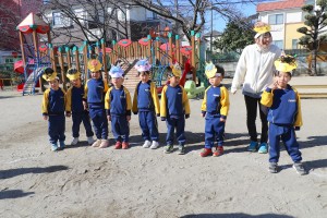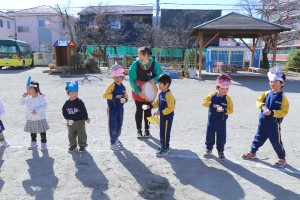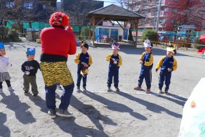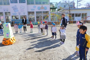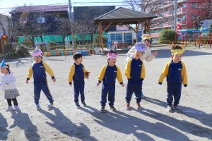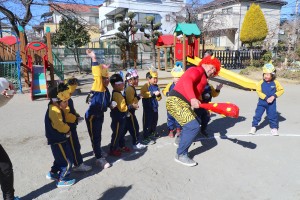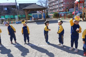 今日は節分にちなんで幼稚園でも豆まきを行いました。