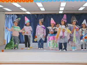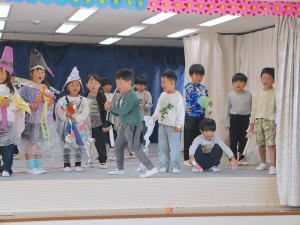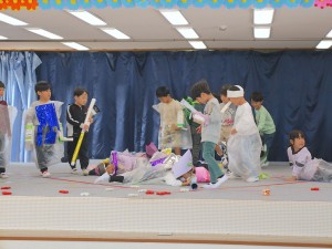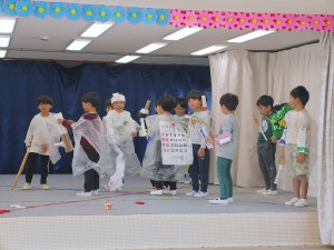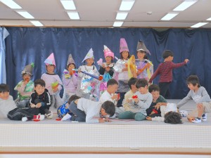 「何をしようか?」からみんなで話し合いをして決まった劇ですが、お話の内容や衣装・小道具・動きやセリフまで、全てを子ども達が考えてゼロから作り上げた超大作!?