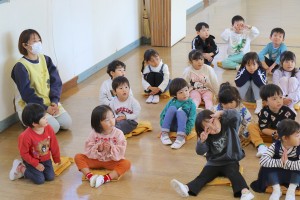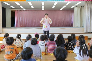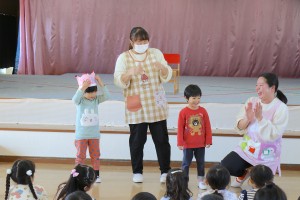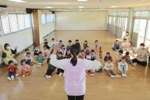 お祝いの後は夏美先生が楽しい手遊びをして、会を盛り上げてくれました。