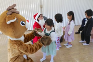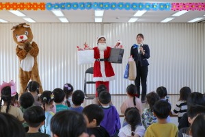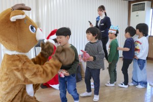 今日は、なほ先生が「クイズどーっちだ?」をしてくれました。そして、サプライズゲスト、サンタさんとトナカイさんがお菓子をたくさん持って遊びに来てくれました!